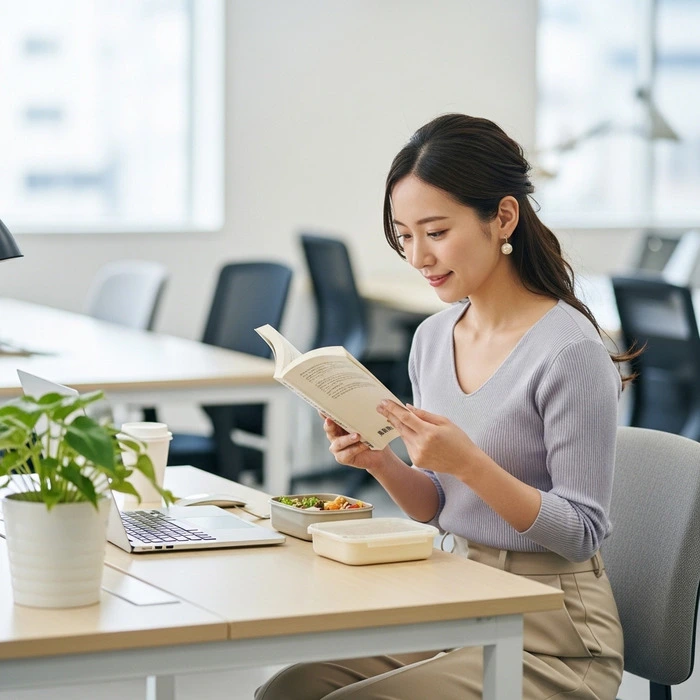 お昼ご飯を食べた後は、私は本を読むことが多いです。昔からミステリー小説が好きなので、頭の中で考察しながら毎日少しずつ読み進めています。 本を読んでいるとあっという間に30分くらい経つので、お昼休憩はすぐ終わってしまうように感じますが、私にとっては十分休めています。